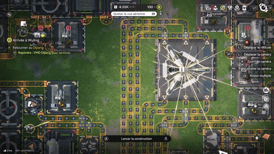 C’est la partie du jeu qui reprendre le concept de Factorio et autres Satisfactory. Pour la faire simple, on doit déployer à travers la carte, des bâtiments pour extraire des ressources (et les alimenter en énergie), et utiliser par la suite ces matières premières pour concevoir des usines automatisées, qui fabriqueront pour nous machines, équipements et autres consommables indispensables à notre aventure.