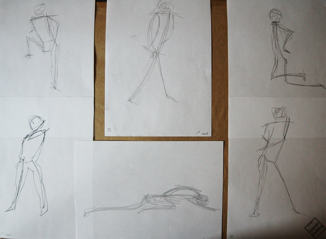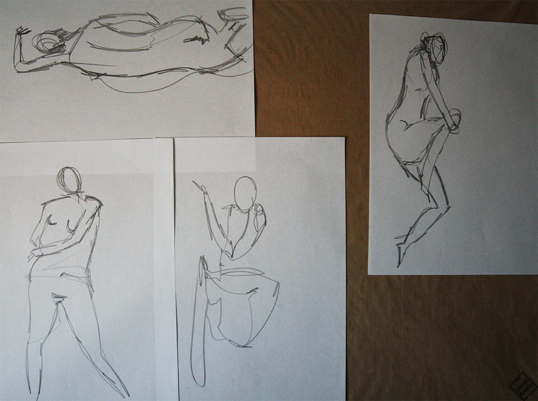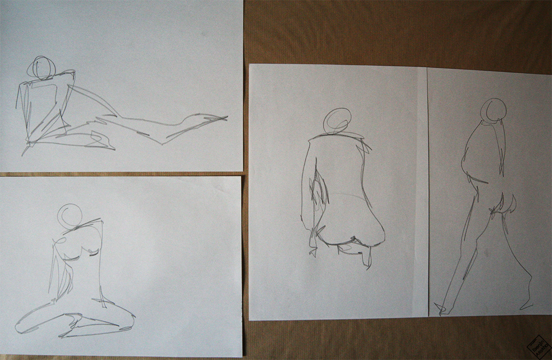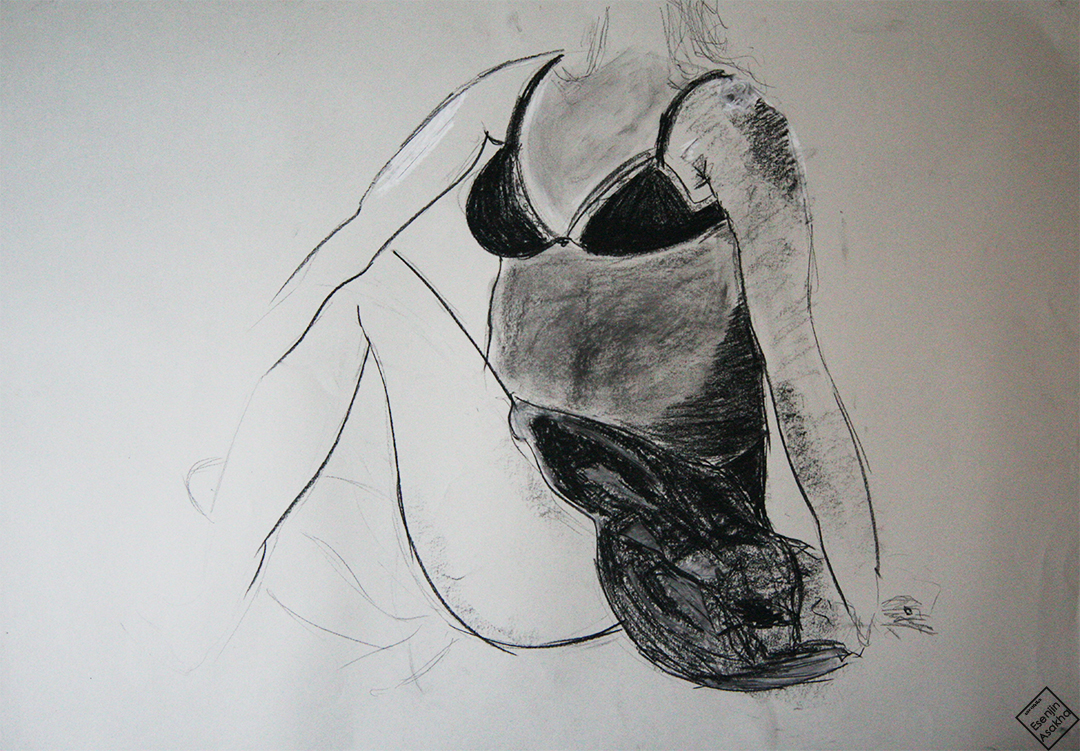 Dessins de modèle vivant (nus) effectués dans le cadre de mes cours en classe de première.
